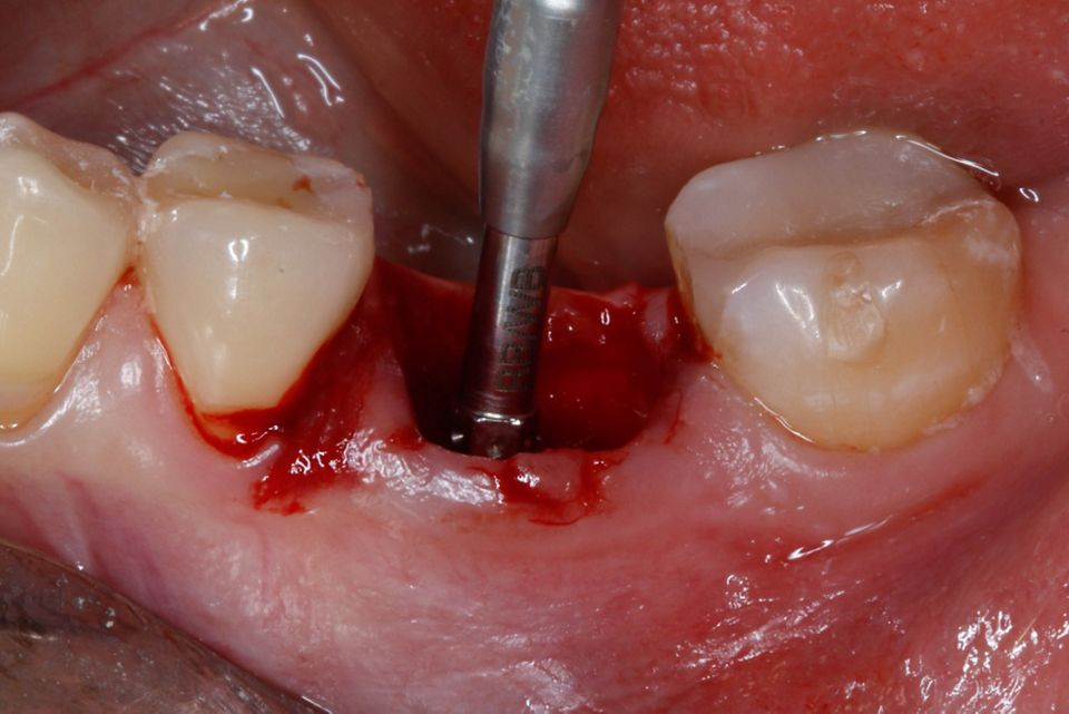 如今,在美观区和前磨牙区立即植入种植体遵循严格的手术方案,基于正确的三维位置、初步稳定性以及软硬组织管理。然而,后牙区即刻种植体仍有多种治疗方法。尽管对美观的影响较小,但后牙区拔牙、保留根间隔、钻孔和种植体植入的手术难度较高。在此临床案例中,我们报告了使用 Straumann® BLX 种植系统的工作流程以及使用富含血小板纤维蛋白 (PRF) 和同种异体骨移植的牙槽嵴保存。